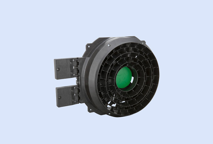 One advantage is the high degree of protection up to IP 54 (splash water protection). The smooth surfaces prevent dirt from sticking. The hinge function also makes it easier to clean heat exchangers in accordance with HACCP regulations. The screws are loosened and the fan is folded away.