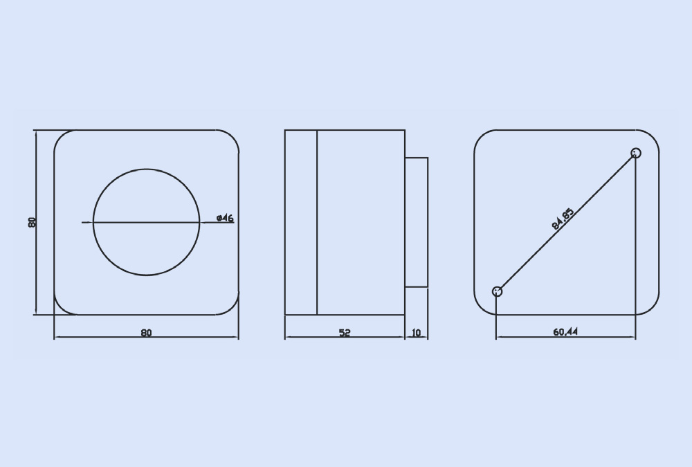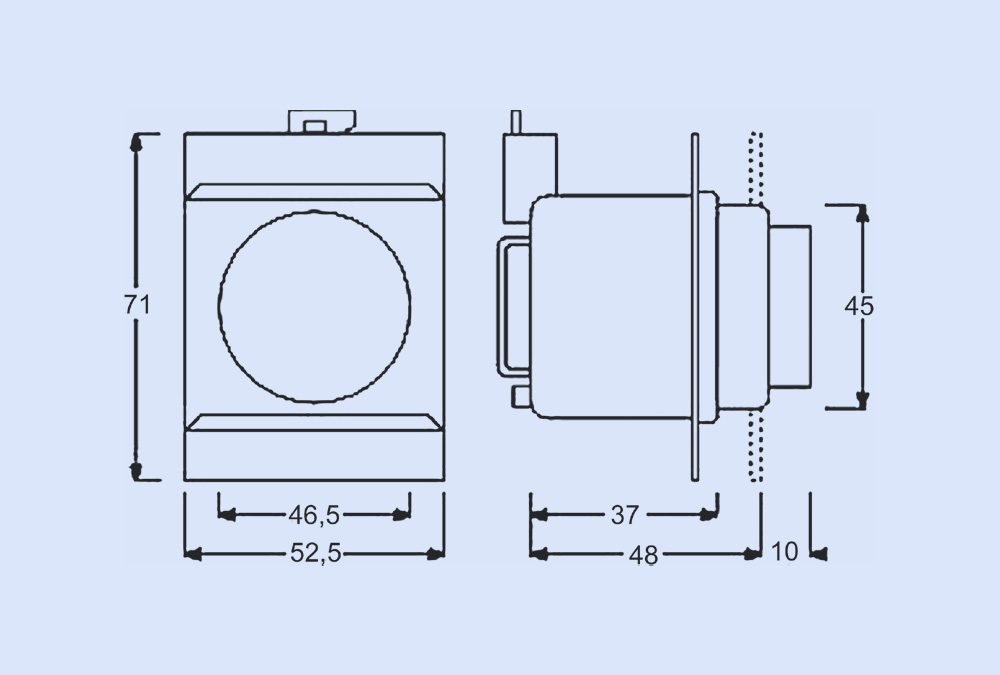 Schalttafeleinbau 45 x 52,5mm (Klemmbefestigung) |